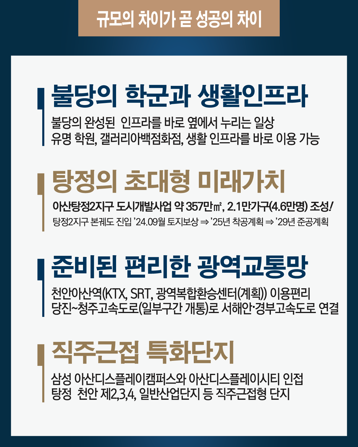 네이버 방문 예약 성함을 입력하세요. 개인정보 처리방침 [개인정보취급방침개인정보동의의 안내] ■ 개인정보 수집·이용 목적 – 상담 신청 확인, 서비스 제공, 분양 관련 안내 및 추천 관리 ■ 수집 항목 – 이름, 휴대전화번호, 방문일자 ■ 수집 방법 – 홈페이지 관심등록을 통해 수집 ■ 개인정보 보유 및 이용 기간 – 수집 동의 시점부터 최대 5년 보유 후 파기 – 단, 목적 달성 시 또는 동의 철회 시 즉시 파기 ■ 개인정보 제3자 제공 – 분양 안내, 추천 처리 등을 위해 필요한 경우 분양대행사에 제공될 수 있음 ■ 파기 절차 및 방법 – 목적 달성 후 별도 DB에서 보관 후 파기 – 종이: 분쇄·소각 / 전자파일: 복구 불가능한 방식으로 삭제 개인정보 수집 및 이용에 동의합니다. 새로운 신도시 총 3,673세대 대단지 타운 아산탕정자이 센트럴시티 방문예약하기 방문예약 아산탕정자이 센트럴시티 방문 예약 하시면 꽝 없는 룰렛 돌리기와 감사 선물을 드립니다. 바로 방문 예약 하기 아산탕정자이 센트럴시티 내집 마련 최고의 시기!전국적인 투자 관심 지역 탕정!5억초반에 만나는 명품 아파트 아산탕정자이 센트럴시티브랜드 타운에 거주하는 당신!바로 명품입니다. 잔여세대안내 로얄층 전문 실장 바로, 아산탕정자이 센트럴시티 로얄층 주인공이 되세요! 바로 전화 걸기